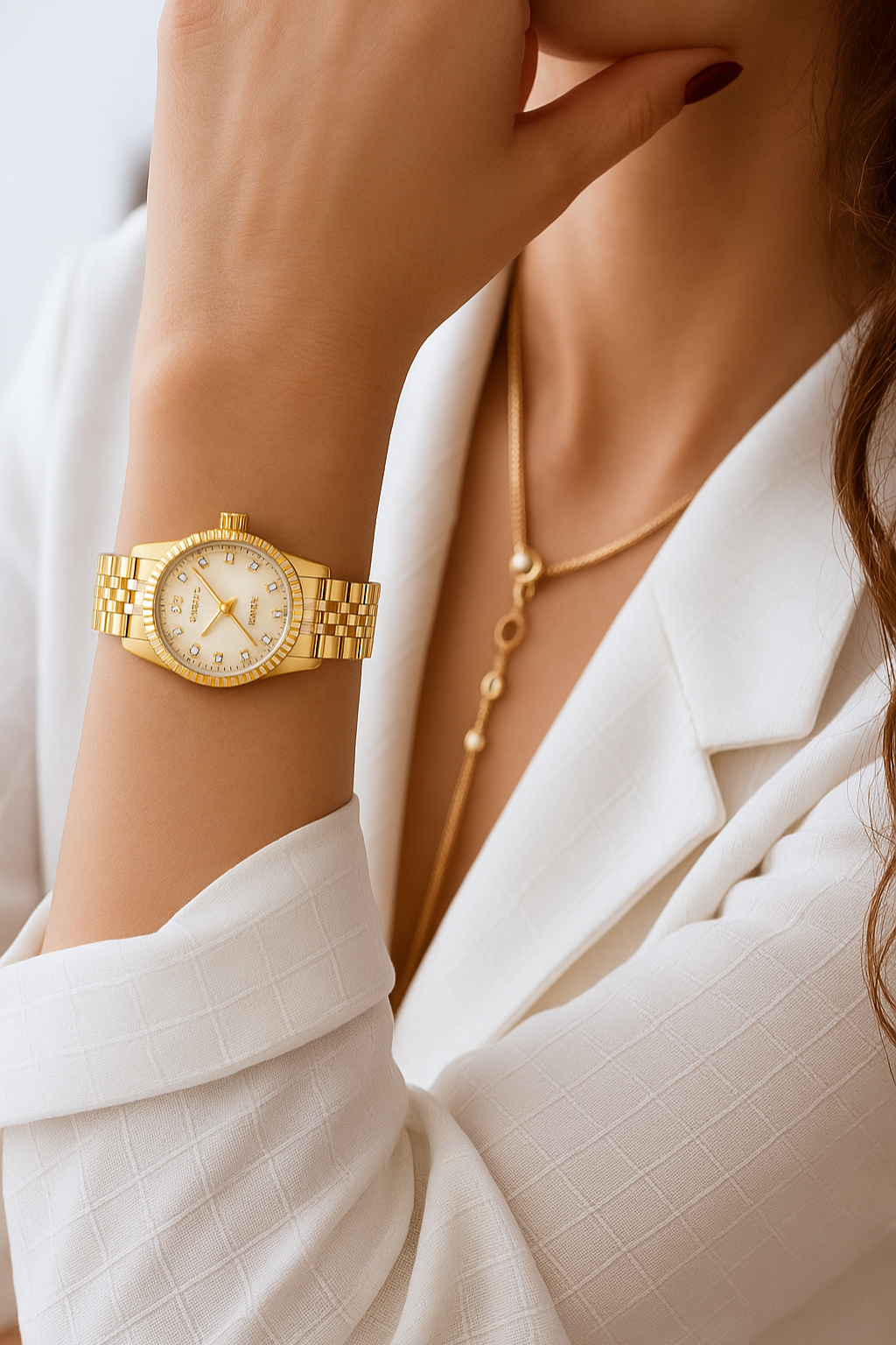 Con un diámetro de caja de 35 mm y un grosor, este reloj se adapta cómodamente a cualquier muñeca. Resistente al agua y a los arañazos, es perfecto tanto para ocasiones formales como para realzar tu look diario.